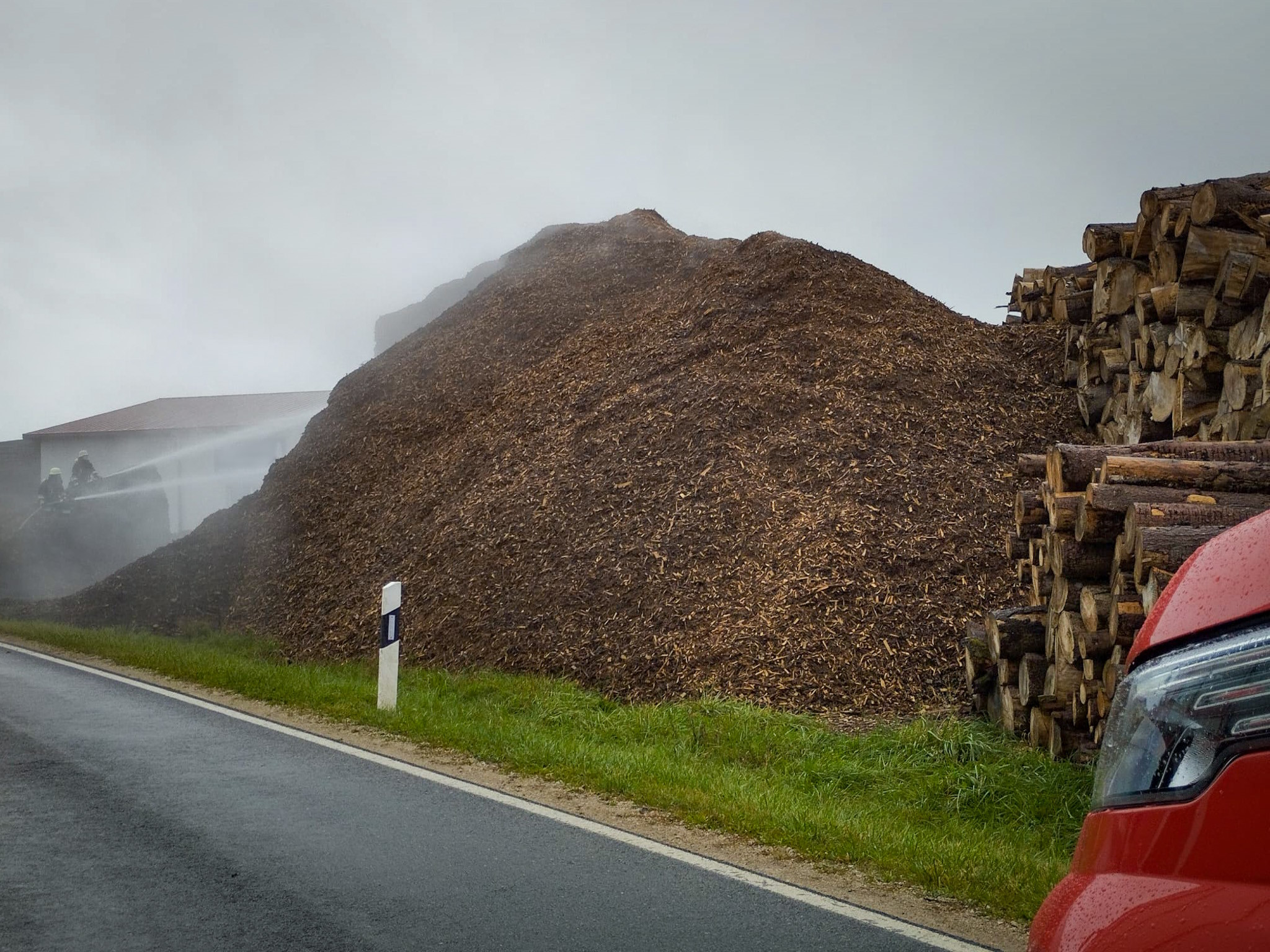 Wir wurden zur Unterstützung für die Breitenbrunner Kameraden nach Langenthonhausen zum Brand eines Hackschnitzelberges alarmiert.