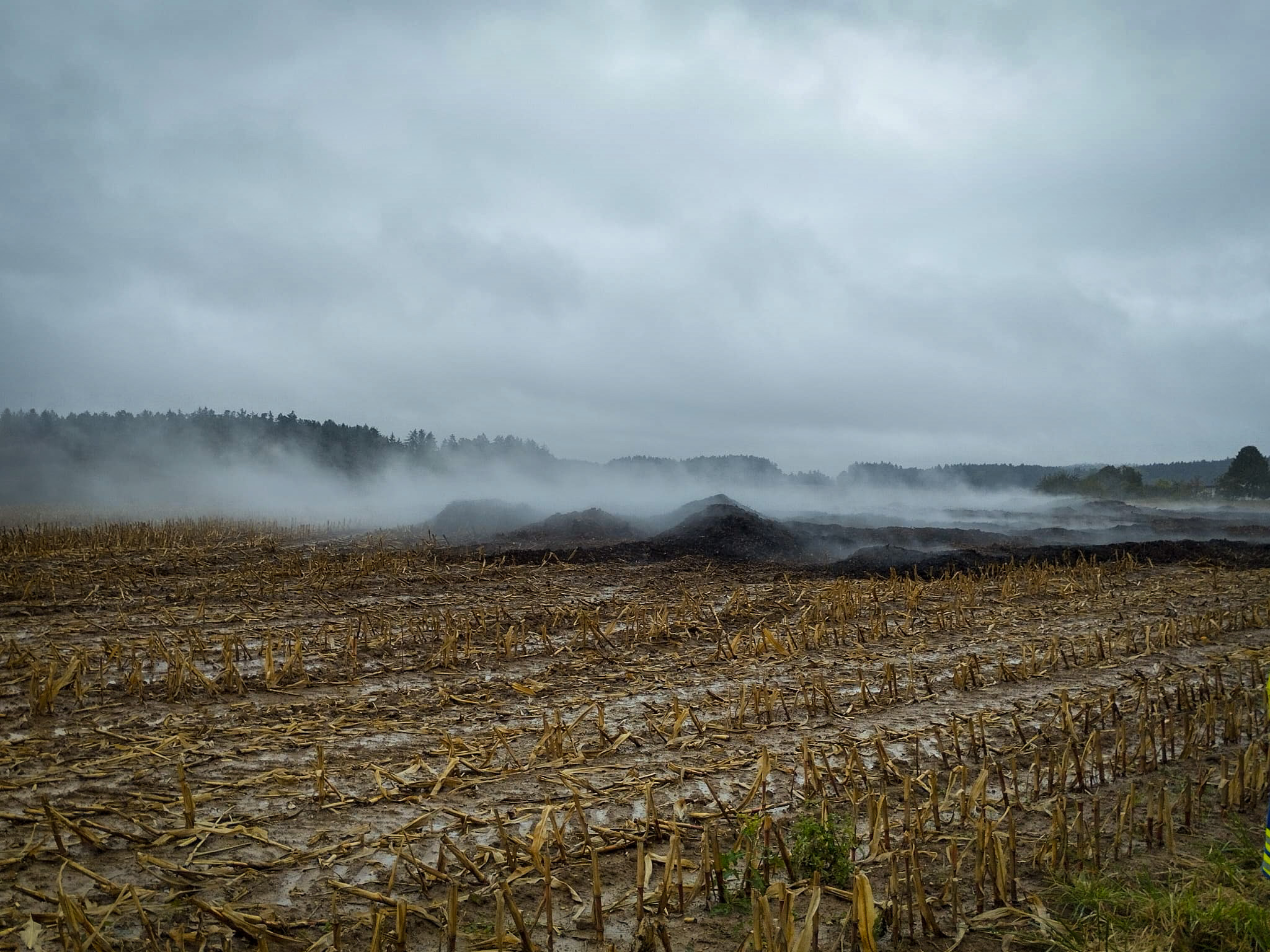 Wir stellten für die Löscharbeiten zusätzliche Atemschutzgeräteträger. Mittels Radlader wurde der Berg abgetragen, wir kontrollierten dabei auf verbleibende Glutnester und löschten diese ab.