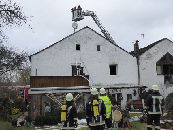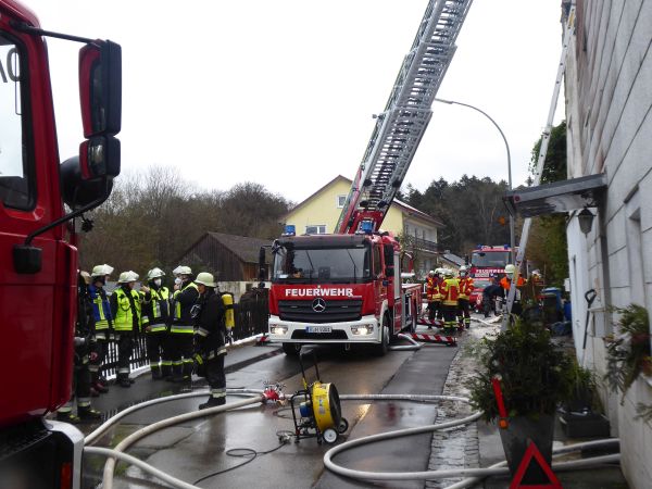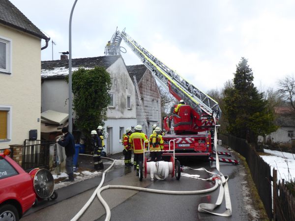 Die Brandbekämpfung wurde durch 2 Atemschutztrupps im Inneren des Gebäudes durchgeführt. Mit der Drehleiter der FF Hemau wurde das Dach von oben mit der Wärmebildkamera auf versteckte Glutnester kontrolliert.