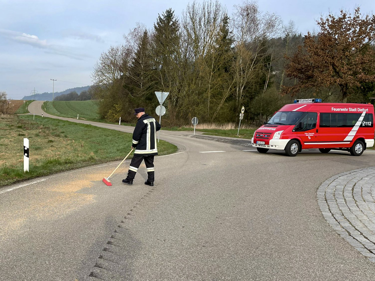 Telefonisch wurde der erste Kommandant über eine kleinere Verunreinigung des Ottmaringer Kreisels durch Getreide gemeldet, welche kurzerhand beseitigt wurde.