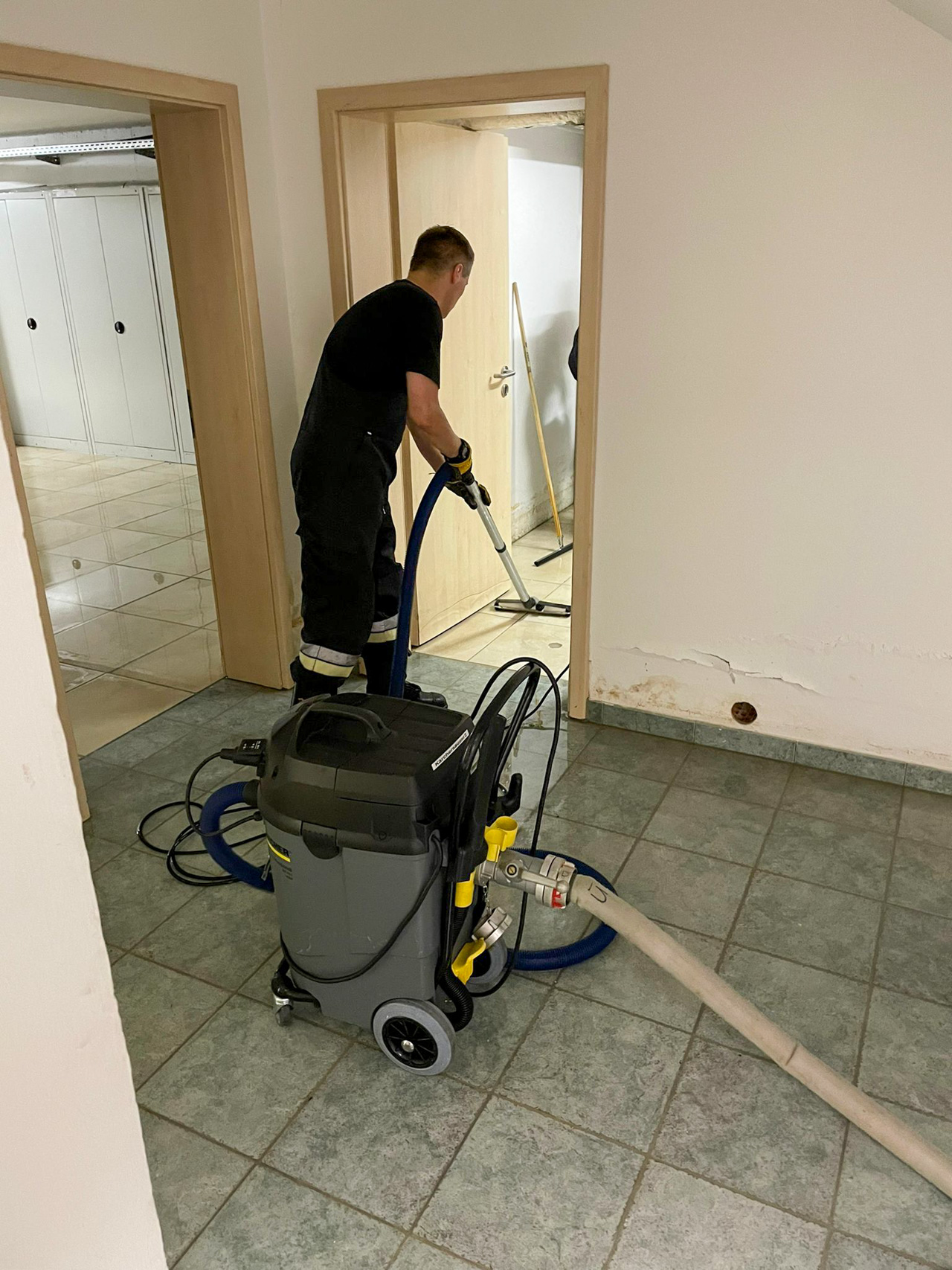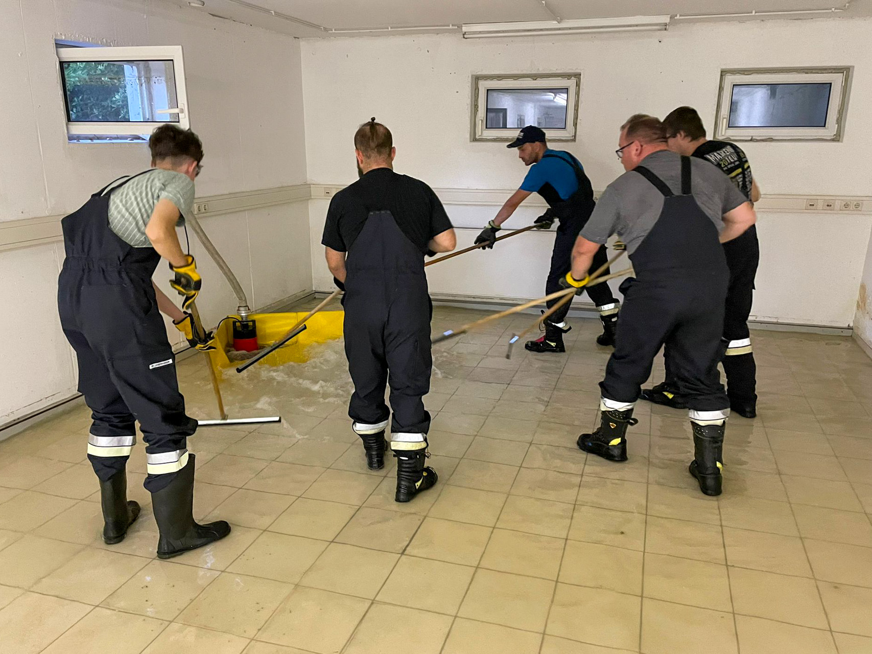 Durch Starkregen drang Wasser in das Kellergeschoss eines Gebäudes in der Industriestraße. Wir pumpten das Wasser ab.