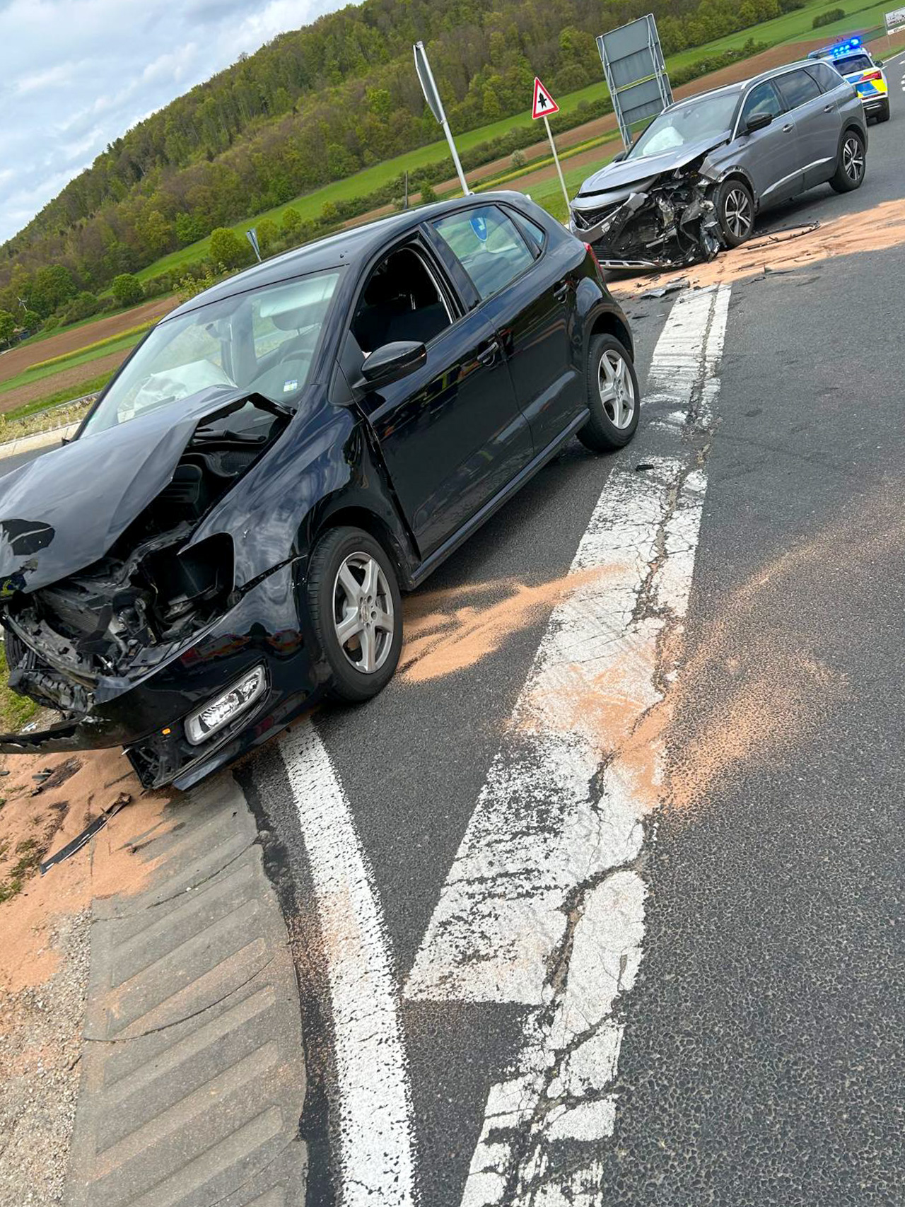 Diese Lagemeldung bestätigte sich glücklicherweise nicht, keine der beteiligten Personen wurde in ihrem Fahrzeug eingeklemmt, jedoch wurden alle vier Personen durch den Frontalzusammenstoß leicht verletzt. Somit konnte der alarmierte Rettungshubschrauber vor der Landung wieder abdrehen. Wir stellten den Brandschutz sicher, banden auslaufende Betriebsstoffe und regelten den Verkehr.